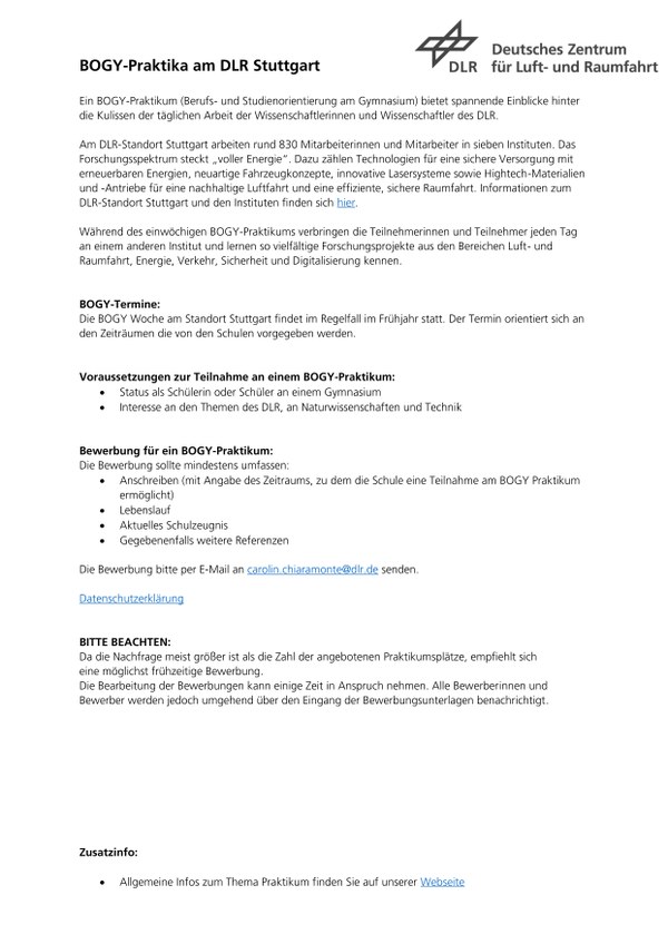 Dem wissenschaftlichen Nachwuchs bietet das DLR in Stuttgart exzellente Ausbildungswege in den Bereichen Elektronikerinnen und Elektroniker für Geräte und Systeme, Feinwerkmechanik und Büromanagement sowie in dualen Studiengängen für Maschinenbau, Elektro- und Informationstechnik, Mechatronik und Facility Management.