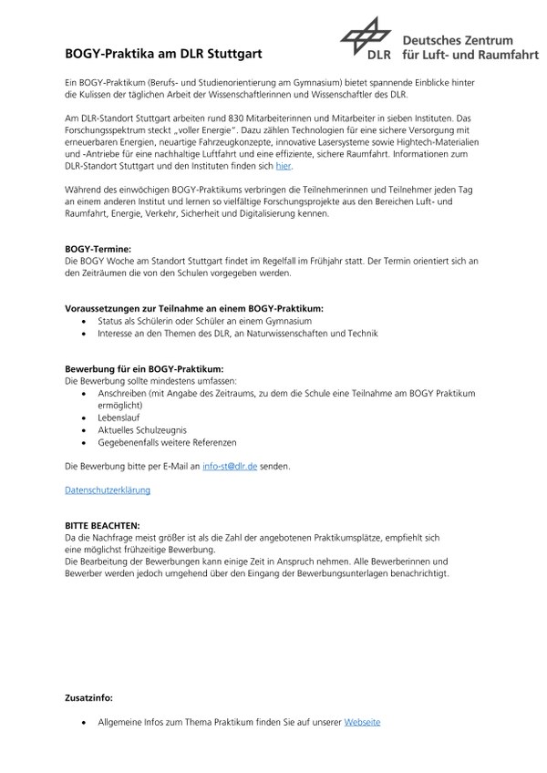 Jungen Talenten bietet das DLR in Stuttgart ausgezeichnete Ausbildungswege in den Bereichen Elektronikerinnen und Elektroniker für Geräte und Systeme, Feinwerkmechanik, Büromanagement sowie in dualen Studiengängen für Maschinenbau, Elektro- und Informationstechnik, Mechatronik und Facility Management.