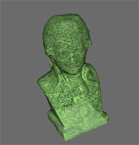 The generated 3D data is unfiltered and unorganized, i.e. the data can contain inaccurate sample points and outliers, due to bad measurement conditions, and the points are not arranged in any particular order relative to the sampled surface. Moreover, the data is a point set without information about connectivity between the points available.
