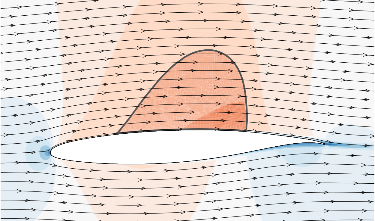 Vorschaubild Verteilung der lokalen Machzahl um ein Flügelprofil