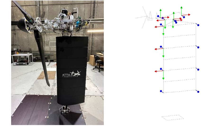 Das Projekt ATTILA (Advanced Testbed for TILtrotor Aeroelastics) konzentrierte sich auf die Entwicklung, den Bau und die experimentelle Erprobung eines Versuchsaufbaus für aeroelastische Windkanalexperimente an Tiltrotor-Flugzeugen. Das Kernstück des Projekts war ein speziell entwickeltes Windkanalmodell: ein instrumentierter, aeroelastisch skalierter Halbflügel mit einem angetriebenen Rotor (siehe Abbildung 1).