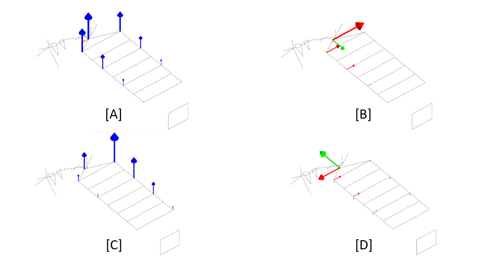 Vor den Windkanalversuchen wurde ein Standschwingungsversuch (GVT) durchgeführt, um die dynamischen Eigenschaften des Versuchsaufbaus - wie Eigenfrequenzen, Dämpfungsmaße und Eigenschwingungsformen - zu bestimmen. Durch den GVT wurde sichergestellt, dass die dynamischen Eigenschaften des Modells den Konstruktionsspezifikationen entsprachen, bevor es aerodynamischen Belastungen ausgesetzt wurde. Eine kritische Komponente zur Anpassung der Steifigkeit des Versuchsaufbaus - der Downstop - erwies sich als weniger effektiv als erwartet. Folglich musste die Konstruktion vor dem Start der Windkanalversuche noch einmal geändert werden. Im Rahmen des GVT wurden zudem erhebliche Nichtlinearitäten des Systems aufgezeigt, die sich auf die Messungen der dynamischen Antwort auswirken. Ein Bild des GVT ist in Abbildung 3 zu sehen, und die ersten vier Eigenschwingungsformen des Versuchsaufbaus sind in Abbildung 4 zu sehen.