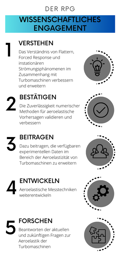 Der Ringgitterprüfstand Göttingen (RPG) ist ein Zeugnis des wissenschaftlichen Engagements und Fortschritts. Der RPG wurde entwickelt, um die Aeroelastik von Turbomaschinenschaufeln zu erforschen und bietet eine einzigartige Plattform für die Untersuchung der komplexen Interaktionsmechanismen zwischen zeitabhängiger Aerodynamik und Strukturdynamik.
