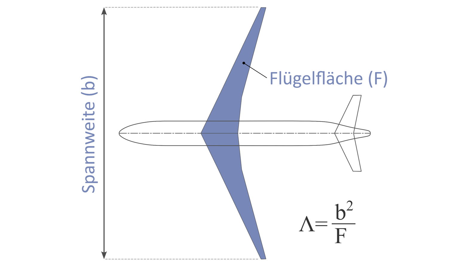 Spannweite (b) und Flügelfläche (F) zur Berechnung des Flügel-Streckungsverhältnisses