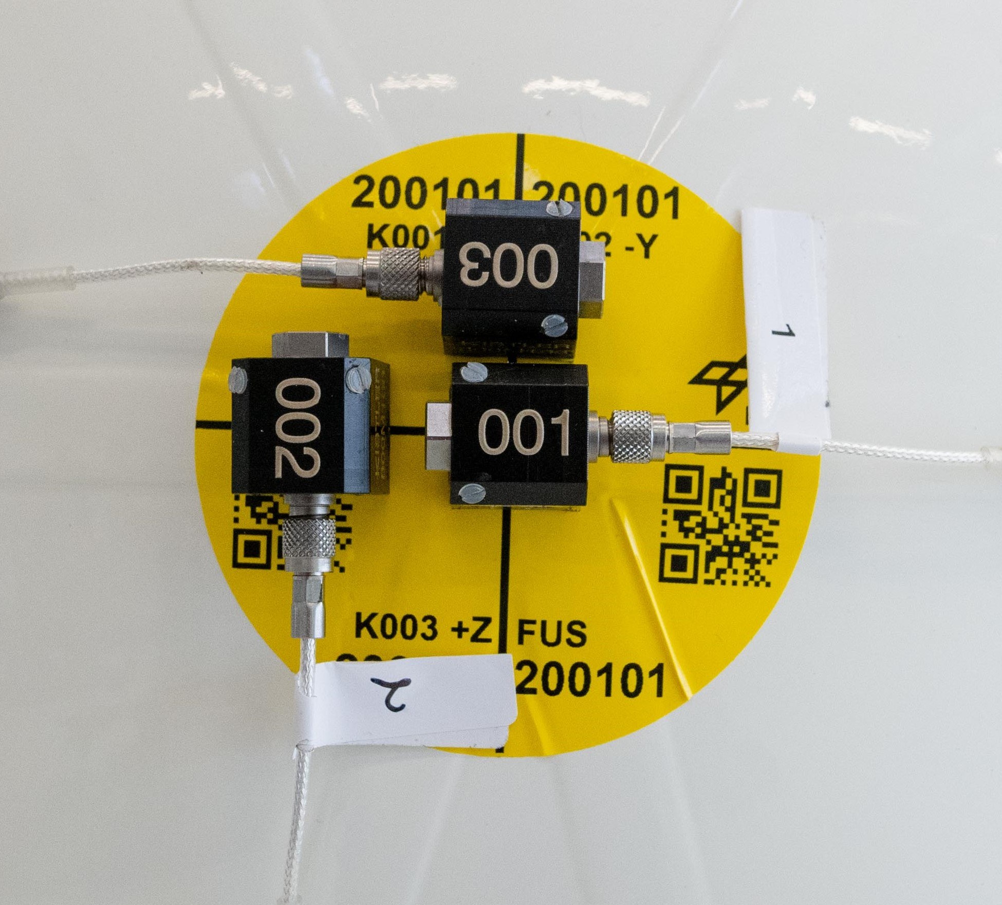 Do228 Electric Flight Demonstrrator - Drei Beschleunigungssensoren, die in drei verschiedenen Richtungen auf der Nase des Flugzeuges installiert und gemessen wurden