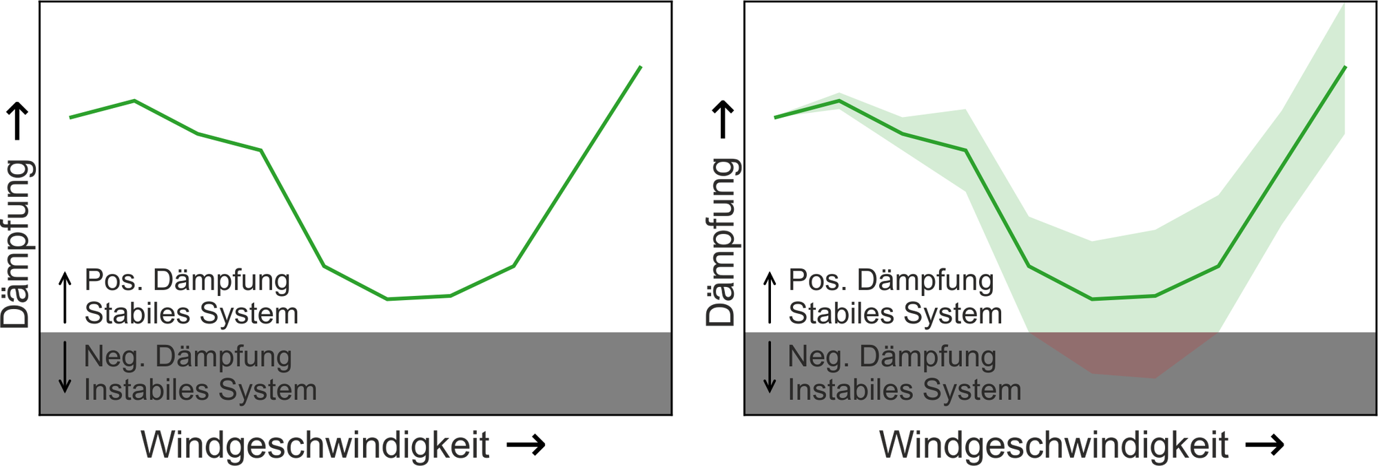 Exemplarische Visualisierung der Vorteile einer Simulation mit Unsicherheitsbetrachtung (rechts) gegenüber einer standardmäßigen deterministischen Simulation (links)