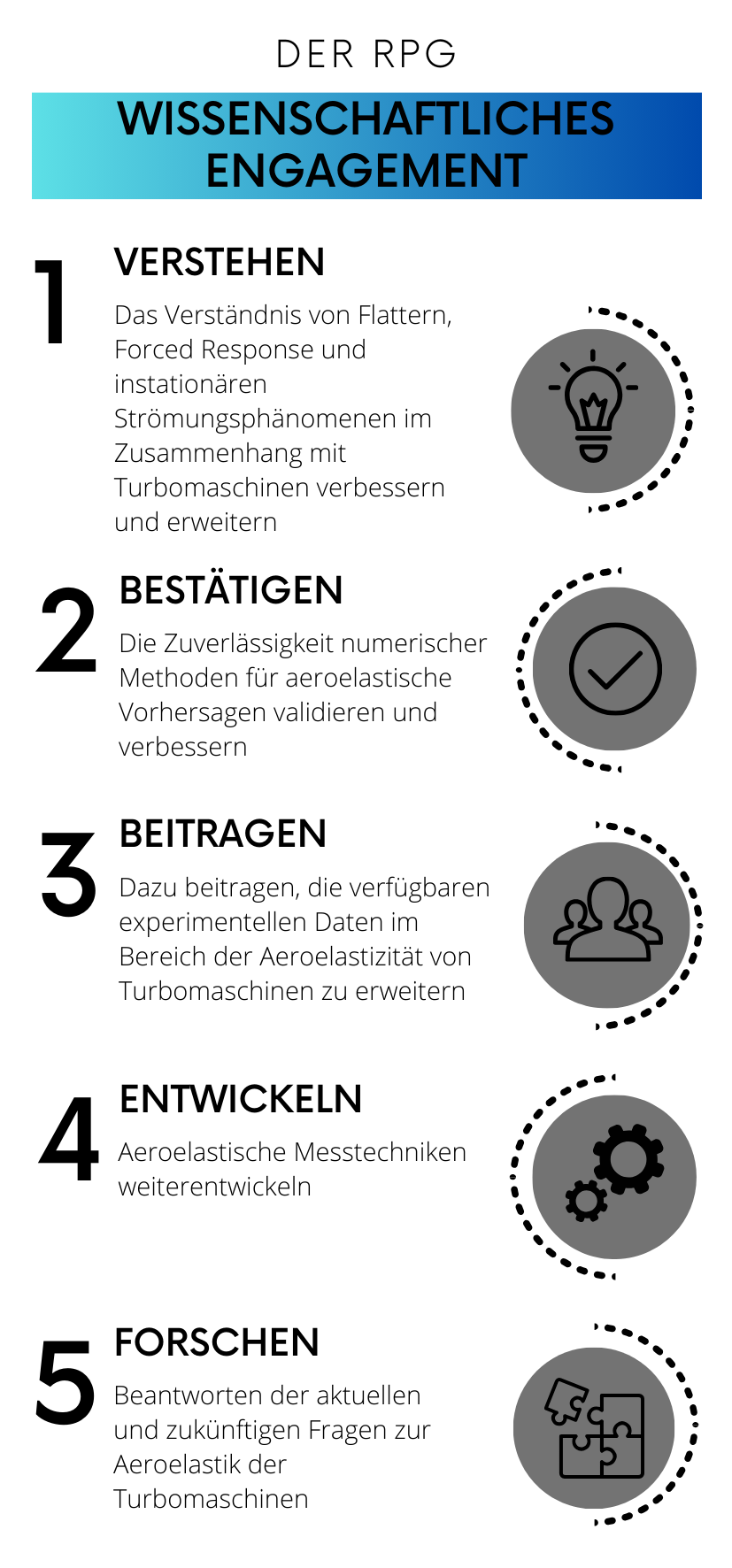 Die im RPG gesammelten Daten werden eine entscheidende Rolle bei der Bewältigung aktueller und zukünftiger aeroelastischer Herausforderungen in Turbomaschinen spielen. Diese Forschung zielt darauf ab, unser Verständnis von Flattern, Forced Response und zeitabhängigen Strömungsphänomenen zu verbessern und letztlich die Zuverlässigkeit numerischer Methoden für aeroelastische Vorhersagen zu validieren und zu verbessern. Der RPG ist auch eine perfekte Plattform, um unsere aeroelastischen Messverfahren zu entwickeln und zu verbessern. Somit können wir als Institut für Aeroelastik und in Zusammenarbeit mit Industrie, Universitäten und weiteren Forschungseinrichtungen, unter Nutzung des RPG einen Beitrag zu den Antriebsanforderungen von morgen leisten. Die Vorfreude steigt und wir können es kaum erwarten, den RPG bei den ersten Messungen in Aktion zu erleben. Bleiben Sie dran und erfahren Sie mehr über die spannende Forschung im RPG.