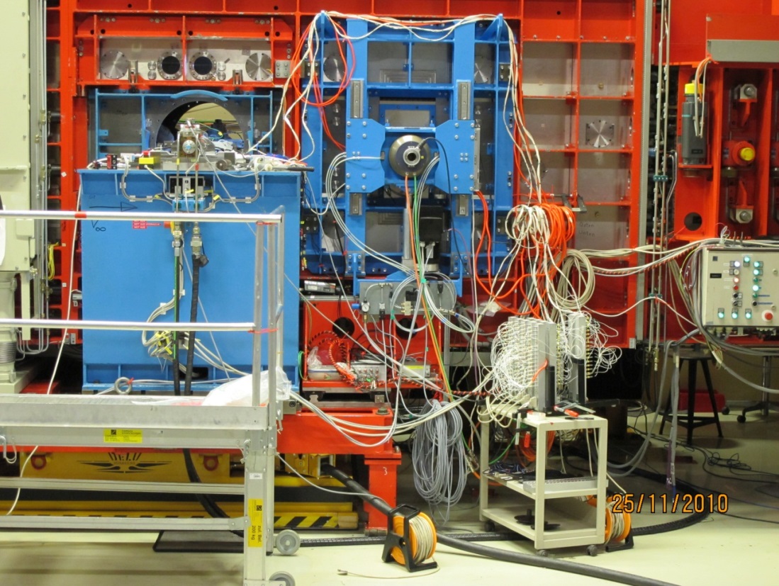 Blick auf die adaptive Messstrecke des DNW-TWG mit Böenerreger (links) und Aufbau für das antwortende Profil (rechts)