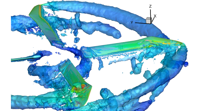 Im Bereich der Flugzeuge reicht das Spektrum der Untersuchungen dabei von Flatteranalysen von Segelflugzeugen bis hin zu Stabilitätsanalysen von großen Verkehrsflugzeugen im schallnahen Flug. Die Untersuchungen basieren dabei auch auf experimentellen Ergebnissen, wenn diese verfügbar sind. Im Bereich der Simulation liegt der Schwerpunkt besonders auf der Entwicklung und Validierung von Verfahren zur Kopplung von Strömung und Struktur sowie der Zeitbereichssimulation auf Basis der Computational Fluid Dynamics (CFD). Für die Berechnung aeroelastischer Vorgänge ist die exakte räumliche und zeitliche Kopplung zwischen Strömung und Struktur entscheidend. Daneben werden Frequenzbereichsverfahren zur Stabilitätsanalyse genutzt und weiterentwickelt.