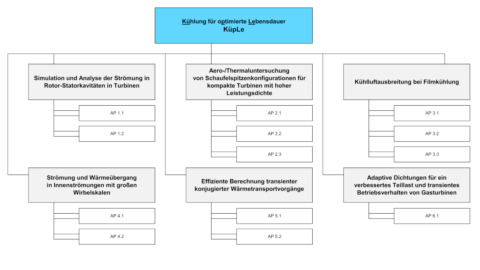 AP1 ist dem Bereich Kavitäten und Dichtungen zugeordnet, die zentraler Bestandteil des Luftsystems jeder Gasturbine sind. Dabei liegt der Fokus auf dem vertieften Verständnis der hochkomplexen dreidimensionalen Strömung in den Kavitäten im inneren Scheibenbereich auch zur Optimierung der Abdichtung gegen Heißgaseintritt.