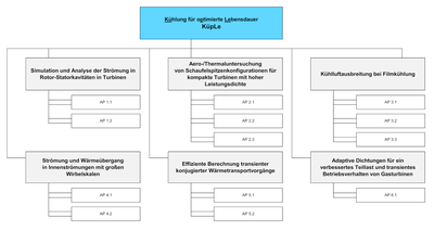 In AP4 und AP5 liegt der Schwerpunkt der Arbeiten auf der Entwicklung von kombinierten numerischen Methoden mit verbesserter Vorhersagefähigkeit auch im transienten Bereich. Neue adaptive Dichtungssysteme, welche durch Geometrievariation die Spalthöhe anpassen können, erlauben deutlich geringe Sperrluftmassenströme. Das physikalische Verständnis im Teillastbereich als auch bei transienten Manövern ist für eine optimierte Auslegung noch nicht ausreichend.