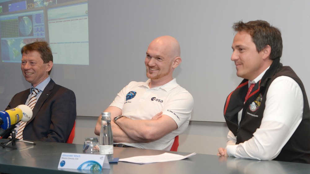 "Servus und willkommen zurück": Alexander Gerst beim Columbus-Kontrollzentrum im DLR
