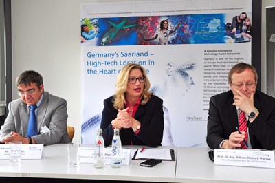 Die Ministerin zeigte sich in ihrem Grußwort vom großen Teilnehmerinteresse hocherfreut. Dies sei ein Beleg dafür, dass das Saarland im Bereich der neuen Technologien, insbesondere in den Schwerpunkten IT- und Nano-Technologien, Medizintechnik und Logistik, gut aufgestellt sei. Das Ziel sei es, die Innovation in diesem Bundesland - im Herzen Europas - weiter voranzutreiben. Die Ministerin betonte zudem, dass Raumfahrttechnologie eine Schlüsseltechnologie sei und in viele Bereiche, die das Saarland vorzuweisen habe, hineinreiche. Sie erhoffe sich von diesem Treffen weitere Impulse für die saarländische Industrie.