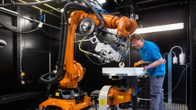 Die Laserschutzzelle, in welcher der Roboterarm arbeitet, hat eine Länge von 5,5 Metern und eine Breite von 4,6 Metern. In ihr können Bauteile mit einer Länge von bis zu 3,6 Metern und einem Durchmesser von 1,8 Metern sowie einem Gewicht von bis zu 2.000 Kilogramm gefertigt und bearbeitet werden.
