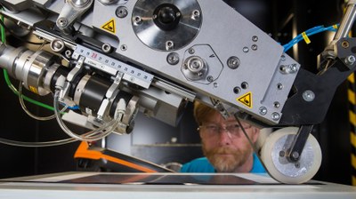 Anders als im Metallbau, wo ein Bauteil oft aus einem größeren Materialblock herausgearbeitet wird, handelt es sich beim Tapelegen um ein additives Verfahren. Das heißt, es wird nur dort Material abgelegt, wo es auch benötigt wird. "Wir sind beispielsweise in der Lage, eine verstärkende Schicht genau dort anzubringen, wo sie aufgrund der speziellen Krafteinwirkungen auf das Bauteil auch wirklich gebraucht wird. Sprich wir können gezielt entsprechend den Lastprofilen arbeiten, produzieren weniger Abfall und arbeiten so möglichst ressourceneffizient", beschreibt Wolfgang Dudenhausen weitere Vorteile des Tapelegens.