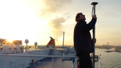 Eine besondere Herausforderung war es, die notwendigen Messdaten im laufenden Betrieb eines Schiffes zu gewinnen. Das Fährschiff Mecklenburg-Vorpommern der schwedischen Reederei Stena-Line pendelt nahezu ununterbrochen zwischen Rostock und Trelleborg und liegt nur sonntags kurz im Hafen. Das hieß für die DLR-Wissenschaftler: Kabel verlegen und Messgeräte und Antennen aufbauen – teilweise während voller Fahrt. Die installierten Sensoren lieferten dann wichtige Daten für die Zusammenarbeit mit den Projektpartnern.