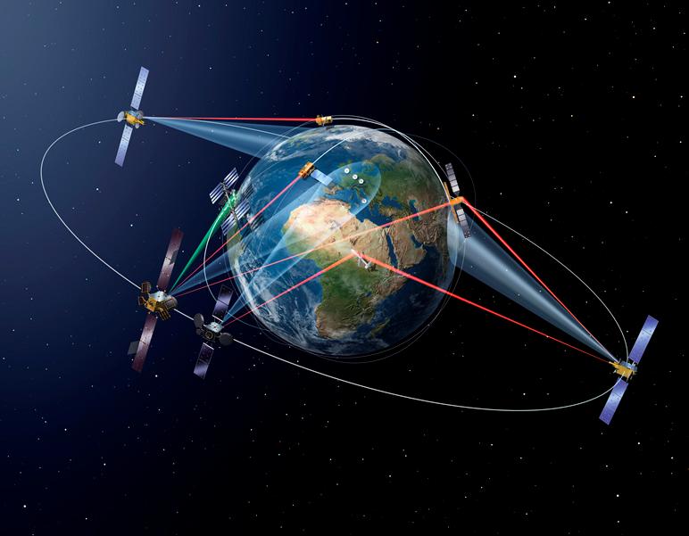 Das "European Data Relay Satellite System" (EDRS) gilt als Meilenstein in der Telekommunikation. Als so genannte Private-Public-Partnership (PPP) zwischen der europäischen WeltraumorganisationEDRS bei der ESAund Airbus Defence and Spacesoll es Datenvolumen von bis zu 1,8 Gigabit pro Sekunde mit einem minimalen Zeitverzug vom All auf die Erde transportieren. Herzstück des Systems, das aus den beiden geostationären "Verteiler"-Knoten EDRS-A und - ab 2017 - EDRS-C besteht, sind die in Deutschland entwickelten und gebauten Laserkommunikations-Terminals.