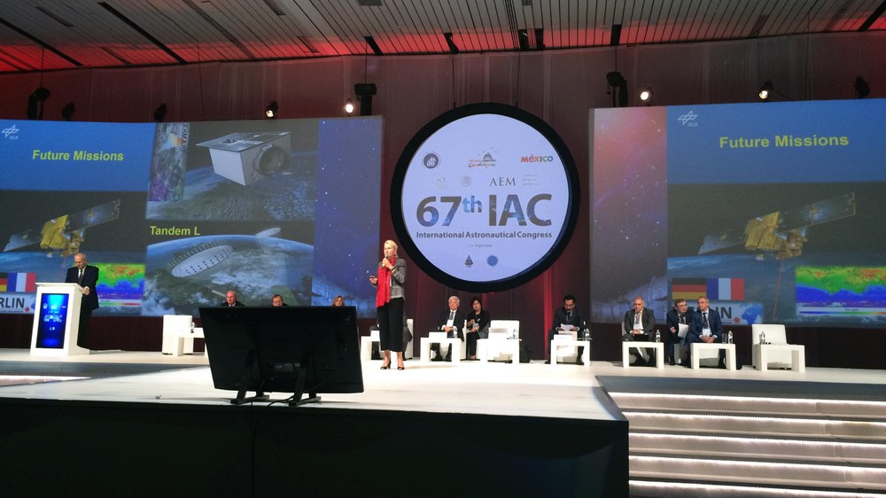 Knapp 20 Wissenschaftler und Ingenieure des DLR waren an der Planung und inhaltlichen Gestaltung des umfangreichen Vortragsprogramms des IAC 2016 beteiligt. Der Vorstand des DLR, vertreten durch Prof. Ehrenfreund, Prof. Dittus und Dr. Gruppe, absolvierte in vier Tagen 35 Meetings mit internationalen Partnern. Unter anderem gehörte dazu eine Diskussionsveranstaltung mit dem Titel "Space and Climate - How can space agencies contribute to the implementation and follow-up of the COP21 Paris Agreement?" Zu den Teilnehmern dieses high-level panels gehörten Vertreter von elf Raumfahrtagenturen, neben Prof. Ehrenfreund unter anderem der Kosmonaut Sergej Krikalev, Roscosmos, Naoki Okumura, JAXA, und Prof. Johann-Dietrich Wörner, ESA. Prof. Ehrenfreund stellte Beiträge aus der Luft- und Raumfahrtforschung des DLR vor, die dem besseren Verständnis, Monitoring und Umgang mit dem Klimawandel dienen. Großen Zuspruch fand zudem der traditionelle deutsche Abend mit rund 250 Gästen, darunter die Raumfahrtchefs von zehn Nationen und internationalen Organisationen.