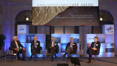 Das Deutsche Zentrum für Luft- und Raumfahrt (DLR) hat gemeinsam mit der Gesellschaft für Maritime Technik e.V. (GMT) zu einem Parlamentarischen Abend zum Thema "Industrie und Forschung, gemeinsam für die Zivile Maritime Sicherheit" am 19. Oktober in Berlin geladen.