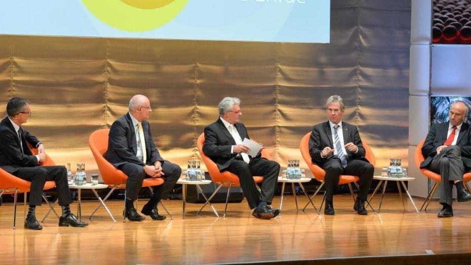 In einer anschließenden Diskussion fragte Prof. Manfred Aigner, Leiter des DLR-Instituts für Verbrennungstechnik und Moderator der Veranstaltung, nach den Stärken und Herausforderungen der Energieforschung in Baden-Württemberg. Die Panelteilnehmer Prof. Dr. Holger Hanselka, Präsident des Karlsruher Instituts für Technologie (KIT), Prof. Dr. Frithjof Staiß, Prof. Dr. Günter Scheffknecht, Institutsdirektor des Universität Stuttgart, Institut für Feuerungs- und Kraftwerkstechnik der Universität Stuttgart und Dr. Wolfram Münch, Leiter des Bereichs Forschung und Entwicklung der Energie Baden-Württemberg AG (EnBW) hoben hier vor allem die gute Zusammenarbeit aller Partner heraus.