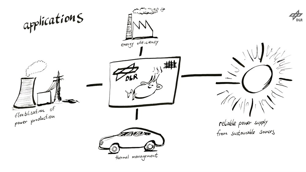 Vor allem im Bereich der Bereitstellung von Prozessdampf haben die Wissenschaftler schon einige Speicherkonzepte entwickelt: Ein Hochleistungsspeicher mit sechs Megawatt Leistung wird aktuell gebaut und in ein Heizkraftwerk integriert, um die kontinuierliche Versorgung mit Dampf sicherzustellen. Weiterhin untersuchen die DLR-Forscher, wie Abwärme mit Hilfe chemischer Reaktionen aufgewertet, sprich das Temperaturniveau so angehoben werden kann, damit sich diese im Prozess wieder nutzen lässt. Auf diese Weise können große Effizienzpotenziale, zum Beispiel in der chemischen Industrie, geschöpft werden.