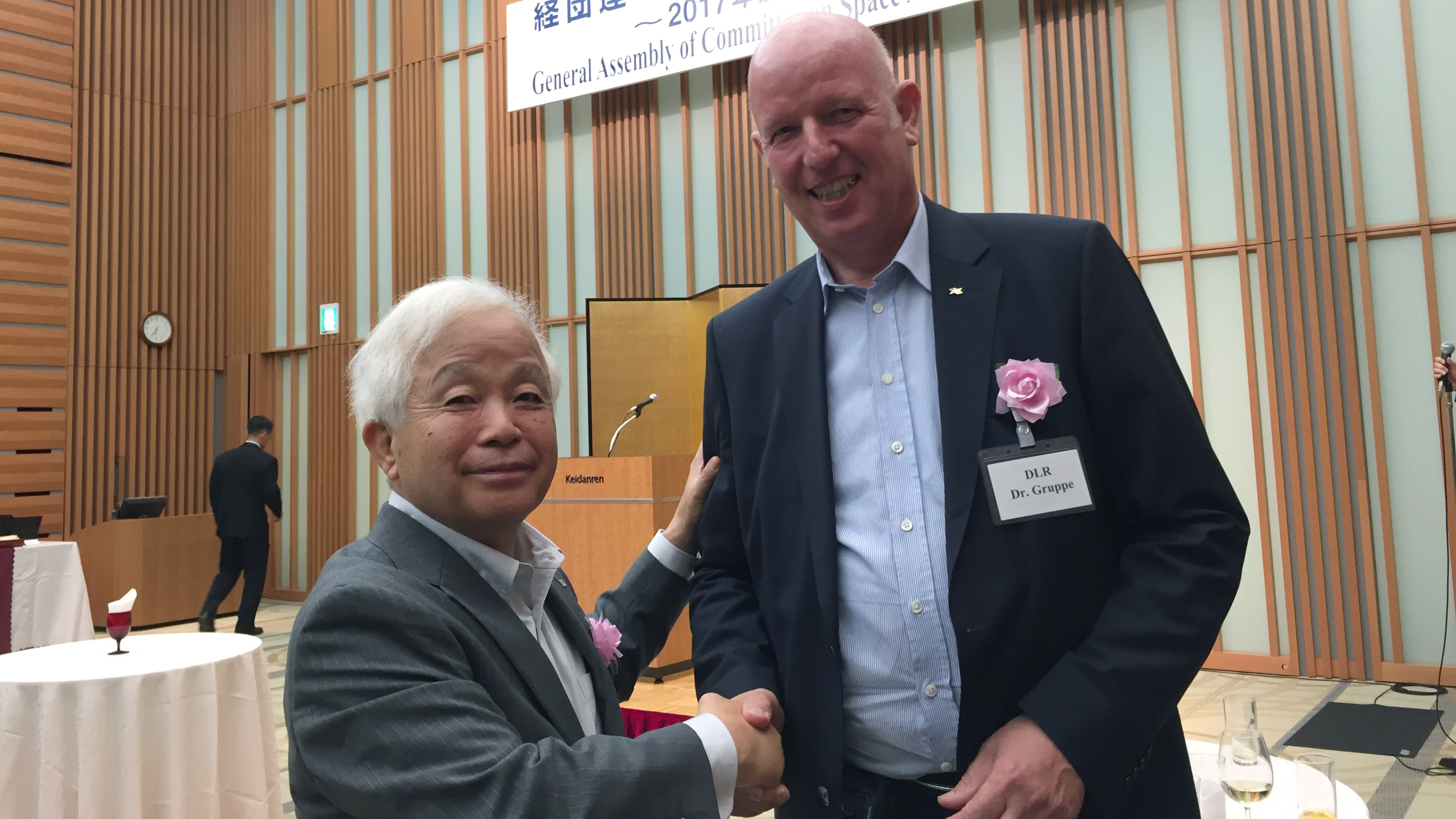 Vor diesem Hintergrund absolviert die deutsche Delegation bestehend aus DLR-Mitarbeitern und Vertreter der Firmen Activespacetech, Airbus Defence & Space, Astro-Feinwerktechnik GmbH, DSI Informationstechnik GmbH, ECM - Engineered Ceramic Materials GmbH, von Hoerner & Sulger GmbH, Jena-Optronik GmbH, JKIC, Kastanienbaum/ Franka GmbH, OHB System AG, RST-Rostock GmbH, ViaLight Communications GmbH einen wahren Gesprächsmarathon mit ihren hochrangigen Gastgebern. Die DLR-Delegation trifft unter anderem mit Yosuke Tsuruho, dem Minister für Wissenschaft, Technologie und Raumfahrtpolitik in der japanischen Regierung, Dr. Naoki Okumura, Präsident der japanischen Raumfahrtagentur JAXA, Masanori Tsuruda, Direktorin des Raumfahrtindustrie-Büros im METI, Mami Oyama, stellvertretende Direktorin des Raumfahrtprogramm-Büros im MEXT, sowie weiteren hochrangigen Vertretern des bedeutendsten japanischen Wirtschaftsverbandes Keidanren und der Society of Japanese Aerospace Companies (SJAC) zusammen. Initiiert durch das DLR und JAXA trifft die deutsche Raumfahrtindustrie zudem ihre japanischen Partner, um neue Kooperationsfelder zu erörtern.