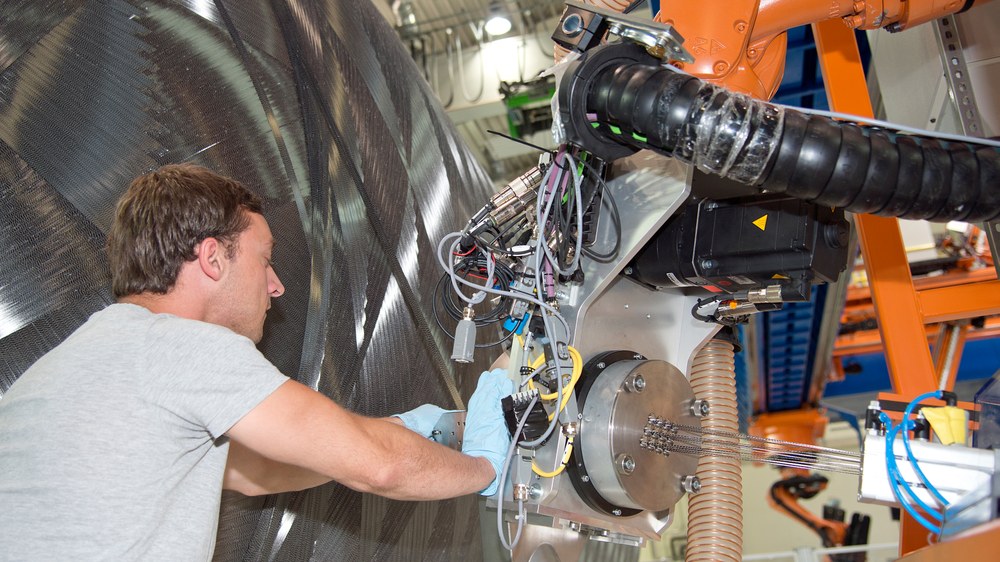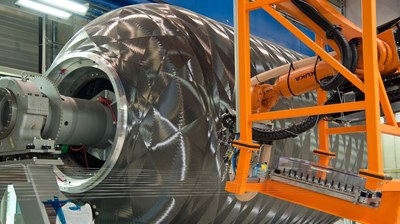 Auf der Basis der Roboterplattform und des Know-Hows der Partner in der CFK- und Produktionstechnologie entstand Schritt für Schritt beim DLR Augsburg das mit einem Druchmesser von 3,6 Metern und einer Länge von sechs Metern größte Bauteil der Institutsgeschichte: vom Wickeln und Legen der Faserverbundschichten, über die Vakuuminfiltration, bis hin zur Aushärtung. Den Leichtbauproduktionsexperten des DLR gelang es, die komplexen Einzelprozesse und unterschiedlichen Robotertypen miteinander in Einklang zu bringen und zu automatisieren. Eine besondere Herausforderung meisterten sie auch mit der Synchronisierung unterschiedlicher Anlagensteuerungen und dem damit verbundenen Synchronlauf zwischen Robotern und Werkzeugen.