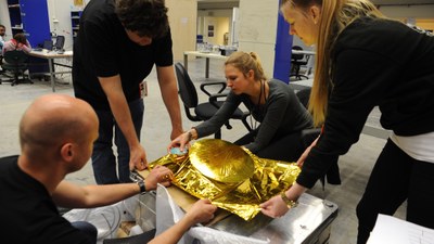 Das Team LOTUS_XD (Transmission experiment of University Students - eXtra Data) der Technischen Universität Dresden testet Solarzellen unter Weltraumbedingungen. Während des Fluges mit dem Stratosphärenballon soll untersucht werden, wie sich die Solarzellen - temperaturabhängig - verhalten, die für eine laserbasierte Energieübertragung von einem Satelliten im Orbit zu einem Explorationsfahrzeug geeignet sind. Dabei werden die Solarzellen und die dazugehörende Elektronik Temperaturen von bis zu minus 60 Grad Celsius ausgesetzt. "Das Experiment soll zeigen, dass es möglich ist, im Weltraum mithilfe der Energie von Solarzellen die Elektronik eines Fahrzeugs oder eines Satelliten einzufrieren, wenn diese nicht benötigt wird, und bei Bedarf wieder zu reaktiveren", erläutert Teamleiter Jan Walter den Hintergrund. "Gleichzeitig sollen die Solarzellen für die Übertragung wissenschaftlicher Daten genutzt werden können."