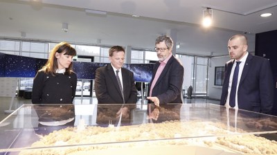 Im weiteren Verlauf des Besuchsprogramms stellte Klaus Schäfer die Pläne zum Bau der Forschungs- und Demonstrationsplattform H2ORIZON vor. Er betonte, dass das Gemeinschaftsprojekt H2ORIZON des DLR-Instituts für Raumfahrtantriebe und der ZEAG Energie AG neue Forschungsperspektiven für nachhaltige Wasserstofftechnologien im industriellen Maßstab eröffnen soll. Ziel ist der Aufbau, Betrieb und die Optimierung eines zukunftsfähigen, marktfähigen Energiesystems, das die Sektorenkopplung von Mobilität, Energiewirtschaft und Raumfahrt sowie die effiziente Einbindung regenerativer Energien mittels Wasserstoff demonstriert.