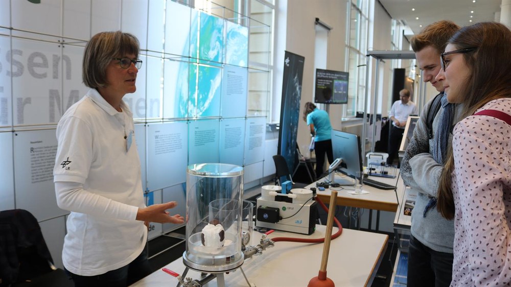 Auf dem Programm standen neben Vorträgen und Experimenten zum Mitmachen auch eine Vielzahl an Workshops zu Raumfahrtmissionen und Weltraumthemen. Am Stand des DLR konnten die Besucher zum Beispiel in einem Quiz ihr Wissen über das Thema Weltraumschrott testen und dabei erfahren, wie die DLR-Forscher die Bahn von Weltraumschrottteilchen mit Hilfe spezieller Laser möglichst genau bestimmen. Das DLR_School_Lab Lampoldshausen/Stuttgart nahm den Nachwuchs mit auf eine Entdeckungstour zur internationalen Raumstation ISS: Mit Hilfe von Experimenten zum Mitmachen konnten so die Geheimnisse des Weltraums entdeckt werden.