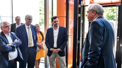 Am 4. Juli 2019 besuchte der Staatssekretär im Bundesministerium für Verkehr und digitale Infrastruktur (BMVI), Dr. Michael Güntner, mit einer Delegation von Abteilungsleitern das Deutsche Zentrum für Luft- und Raumfahrt (DLR) in Köln. Begleitet von Prof. Dr. Hansjörg Dittus, DLR-Vorstand Raumfahrtforschung und –technologie sowie Prof. Rolf Henke, DLR-Vorstand Luftfahrtforschung, informierten sich die Gäste über die aktuellen Forschungsthemen im DLR.