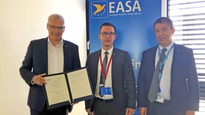 Nach dem 2018 zwischen dem Deutschen Zentrum für Luft- und Raumfahrt (DLR) und der Europäischen Agentur für Flugsicherheit EASA unterzeichneten Kooperationsabkommen, folgt nun die Entsendung eines DLR-Mitarbeiters in die europäische Behörde. Darauf einigten sich der Luftfahrtvorstand des DLR, Prof. Rolf Henke und der EASA-Direktor Patrick Ky.