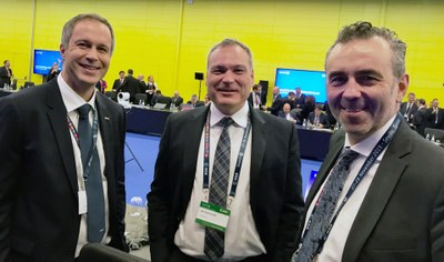 An der Spitze der deutschen Delegation der Konferenz Space19+ stand der Koordinator für die Luft- und Raumfahrt, Thomas Jarzombek (MdB), unterstützt und begleitet von Vertretern des Bundesministeriums für Wirtschaft und Energie (BMWi) und des Bundesministeriums für Verkehr und digitale Infrastruktur (BMVI). Ebenfalls am Verhandlungstisch in Sevilla Dr. Walther Pelzer, DLR-Vorstand für das Raumfahrtmanagement, der auf Arbeitsebene mit seinem Team des DLR Raumfahrtmanagements in Bonn die deutschen Positionen der Konferenz vorbereitet und mit der Bundesregierung abgestimmt hat.