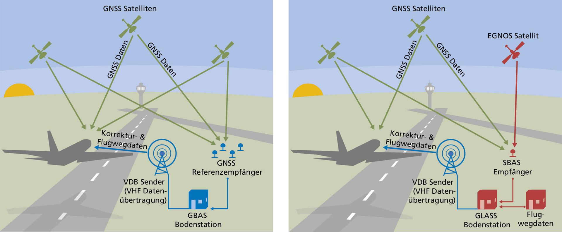 - Mit dem satellitengestützten Landeverfahren können Flugzeuge mit Hilfe eines präzisen Landesystems auch kleine Flughäfen automatisch anfliegen.