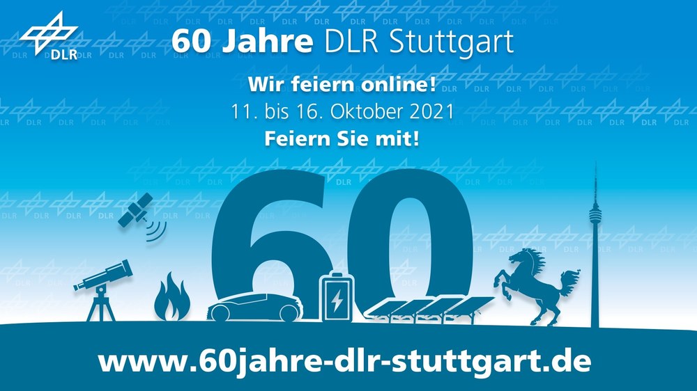 Der Standort Stuttgart des Deutschen Zentrums für Luft- und Raumfahrt (DLR) wird sechzig – ein Grund zum Feiern: Vom 11. bis 16. Oktober 2021 bietet die Jubiläums-Website60jahre-dlr-stuttgart.de allen Gästen online ein abwechslungsreiches, informatives Programm rund um das DLR Stuttgart. Sechs Thementage geben mit Laborführungen, Kurzvorträgen und Vorlesungen Einblicke in die verschiedenen Forschungsgebiete: von erneuerbaren Energien, über das Thema Wasserstoff oder die Mobilität von morgen bis hin zu Luft- und Raumfahrtforschung.