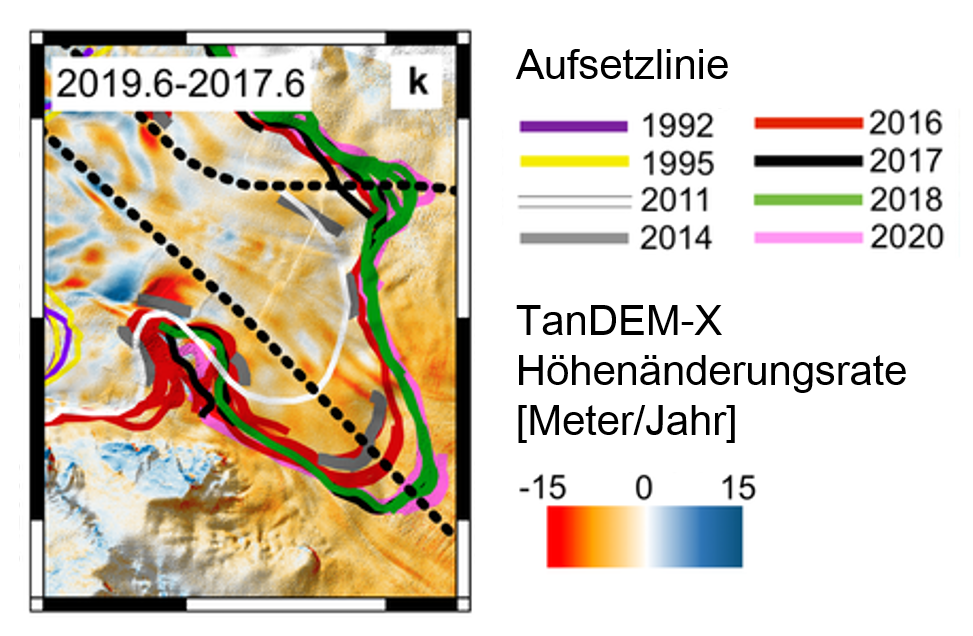 „Für die Bestimmung der Abschmelzraten haben wir am DLR zusätzlich mehr als 240 digitale TanDEM-X-Höhenmodelle erzeugt, die die Westantarktis von 2011 bis 2019 hochgenau abbilden“, sagt Co-Autorin Dr. Paola Rizzoli vom DLR-Institut für Hochfrequenztechnik und Radarsysteme. Dazu gehört eine eingespielte Produktion: Das Nationale Raumfahrtkontrollzentrum ist für den Betrieb von TerraSAR-X und TanDEM-X verantwortlich und kommandiert die Zwillingssatelliten für die benötigten Aufnahmen. Aufgezeichnet werden die Radardaten vom Deutschen Fernerkundungsdatenzentrum an seinen Empfangsstationen in Neustrelitz, Inuvik (kanadische Arktis) und GARS O’Higgins (Antarktis). Das DLR-Institut für Methodik der Fernerkundung liefert die Eingangsdaten für die automatisierte TanDEM-X-Prozessierungskette. Die interferometrische Prozessierung, Geokodierung und Kalibrierung der TanDEM-X-Aufnahmen wurde am DLR-Institut für Hochfrequenztechnik und Radarsysteme implementiert und durchgeführt.