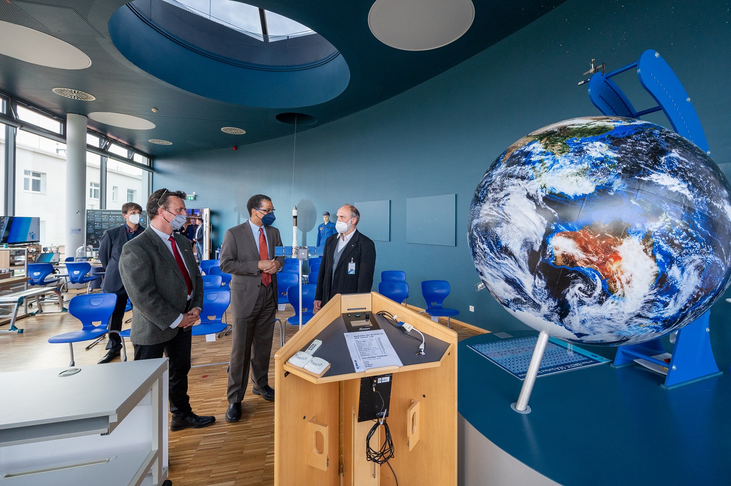 Während des Rundgangs durch den Standort wurden den Gästen der Datenempfangskontrollraum des Deutsches Fernerkundungsdatenzentrum (DFD) gezeigt. Die Abteilung Nationales Bodensegment betreibt dort eine Satellitenempfangseinrichtung für Nutzlastdaten von Fernerkundungs- und wissenschaftlichen Kleinsatelliten in Deutschland. Durch die zentrale Lage in Europa und der Einbindung in das ESA-Earthnet stellt die Einrichtung einen zentralen Knoten im internationalen Netzwerk der Empfangsstationen dar.