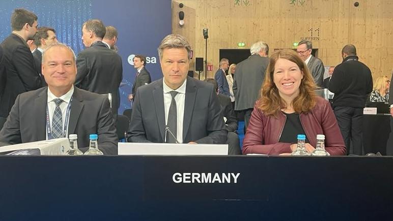 An der Spitze der deutschen Delegation standen Bundeswirtschaftsminister Dr. Robert Habeck und die Koordinatorin für die deutsche Luft- und Raumfahrt, Dr. Anna Christmann (MdB), begleitet von Vertretern des Bundesministeriums für Wirtschaft und Klimaschutz (BMWK) und des Bundesministeriums für Digitales und Verkehr (BMDV). Ebenfalls am Verhandlungstisch in Paris dabei war Dr. Walther Pelzer, DLR-Vorstand und Leiter der Deutschen Raumfahrtagentur im DLR, der mit seinem Team in Bonn die deutschen Positionen der Konferenz vorbereitet und mit der Bundesregierung abgestimmt hat.