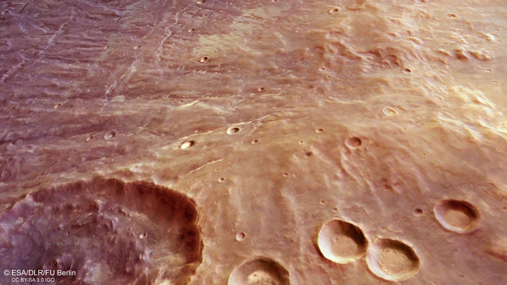 Auf den westlichen Abhängen der Coprates-Berge fällt der Blick auf eine stark von Erosionskräften veränderte Landschaft. Ursprünglich dürfte die Anhebung des Geländes um mehrere tausend Meter bereits im Mars-Altertum vor dreieinhalb bis vier Milliarden Jahren passiert sein, als Magmablasen die Kruste aufgewölbt haben. Dabei brach die Kruste vielerorts infolge von Dehnungsspannung auf, wobei die Gäben von Nectaris Fossae entstanden. Zahlreiche namenlose große Krater belegen das hohe Alter dieser Landschaft, die sich nach der Zeit tektonischer Aktivität und einer Phase intensiven Vulkanismus‘ nur noch wenig verändert hat.