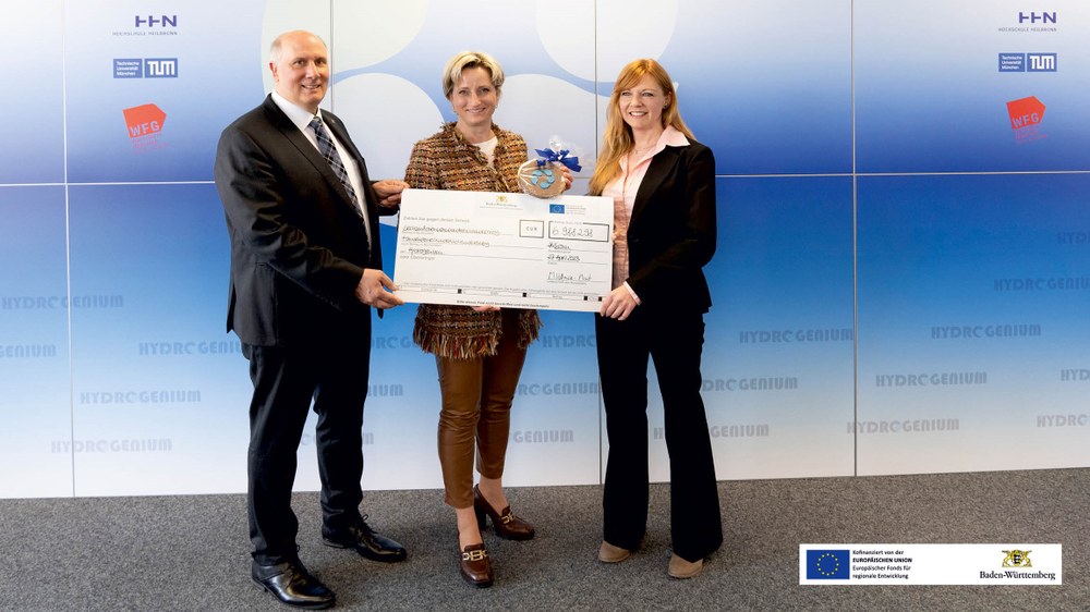 - Die baden-württembergische Wirtschaftsministerin hat am 27. April 2023 einen Zuwendungsbescheid in Höhe von rund 6,9 Millionen Euro für das RegioWIN-Leuchtturmprojekt Hydrogenium übergeben.
