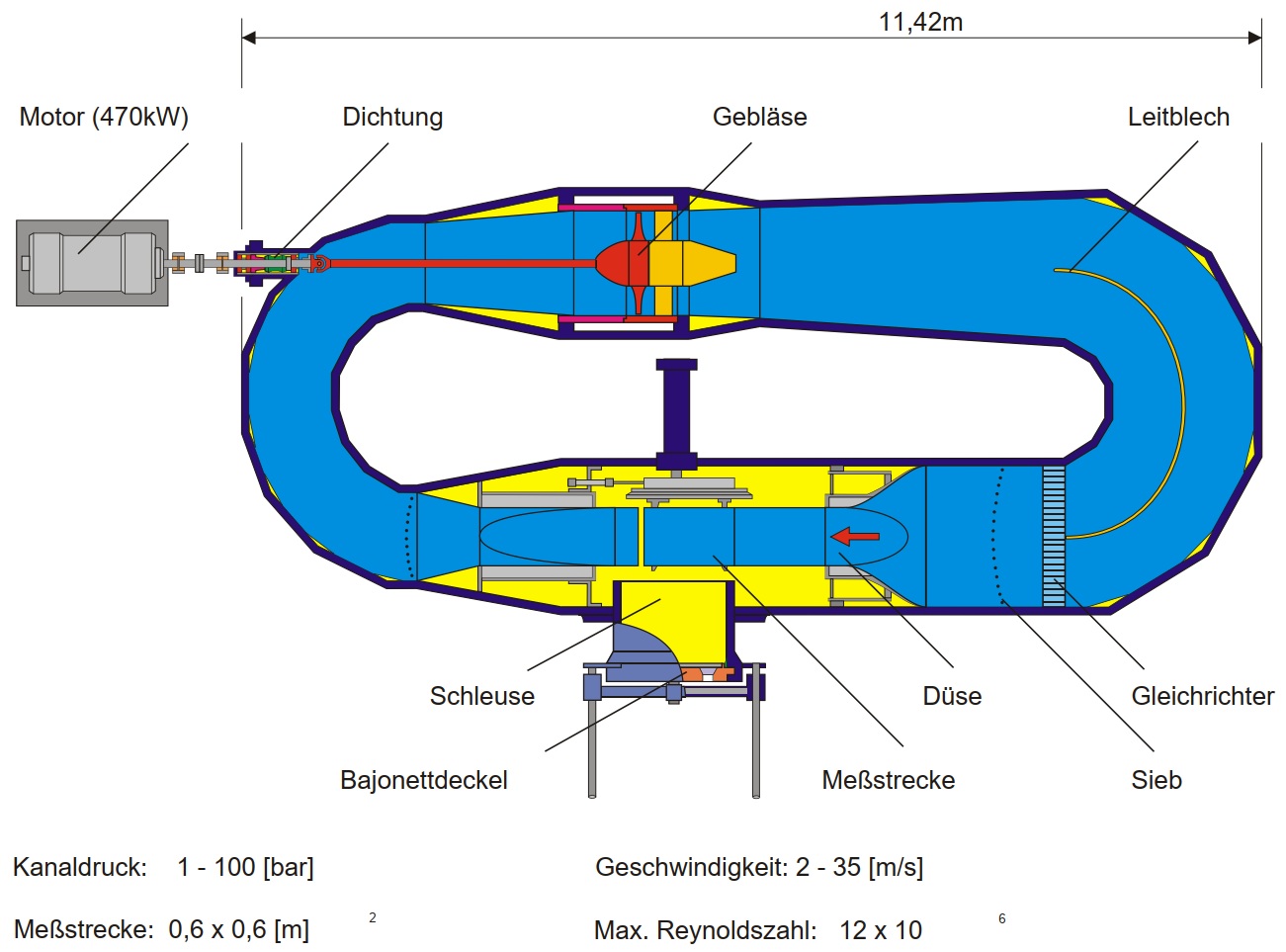 Skizze des Hochdruckwindkanals Göttingen