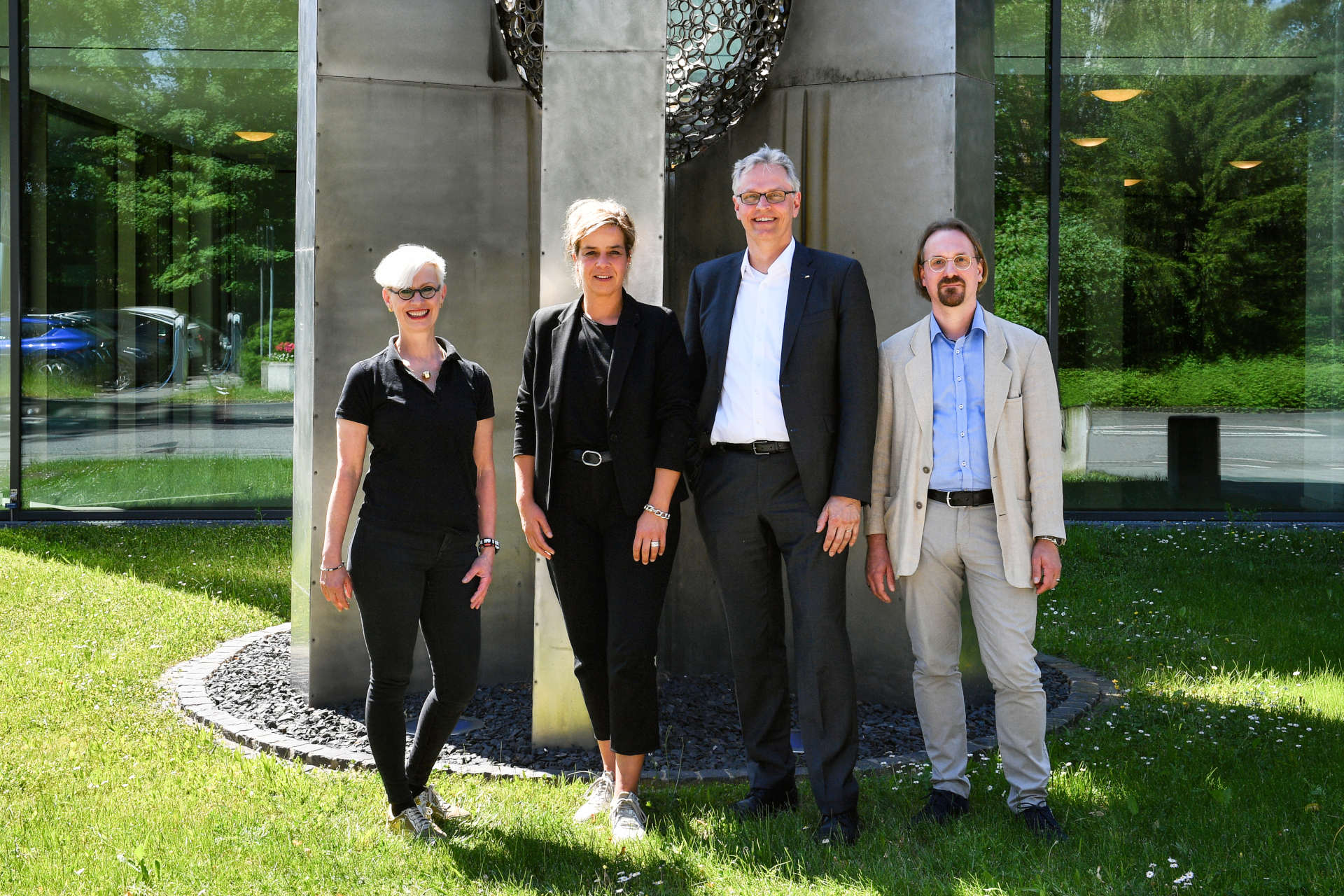 Von links: Prof. Dr.-Ing. Anke Kaysser-Pyzalla, Ministerin Mona Neubaur, Prof.Dr.-Ing. Karsten Lemmer und Dr. Michael Scharnberg (BMWK)