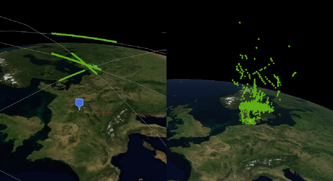 Ausgesuchte Messergebnisse der Funktionsdemonstration von GESTRA. Links: Im Suchmodus konnten mehr als 200 Objekte pro Stunde detektiert werden. Rechts: Im Tracking-Modus können Objekte gezielt auf ihrer Bahn verfolgt werden.