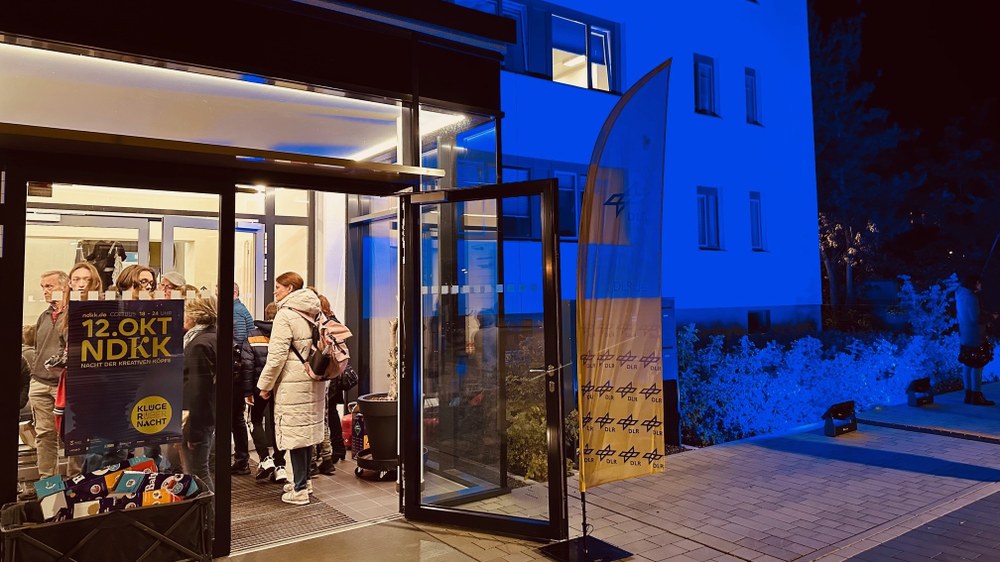 Zur Nacht der kreativen Köpfe in Cottbus öffnete am 12. Oktober 2024 das Deutsche Zentrum für Luft- und Raumfahrt (DLR) wieder seine Türen. Die Institute für Elektrifizierte Luftfahrtantriebe und CO2-arme Industrieprozesse sowie das DLR_School_Lab Berlin präsentierten spannende Experimente, Mitmachaktionen und Vorträge, um den zahlreichen Besuchenden Wissenschaft und Forschung hautnah erlebbar zu machen. Hierbei war für jede und jeden Wissenschaftsinteressierten etwas dabei - ob Antriebstechnologien von Flugzeugen der Zukunft, Experimente rund um das Thema Energieforschung und CO2-Minderung in der Industrie oder eine virtuelle Reise zur Internationalen Raumstation ISS.