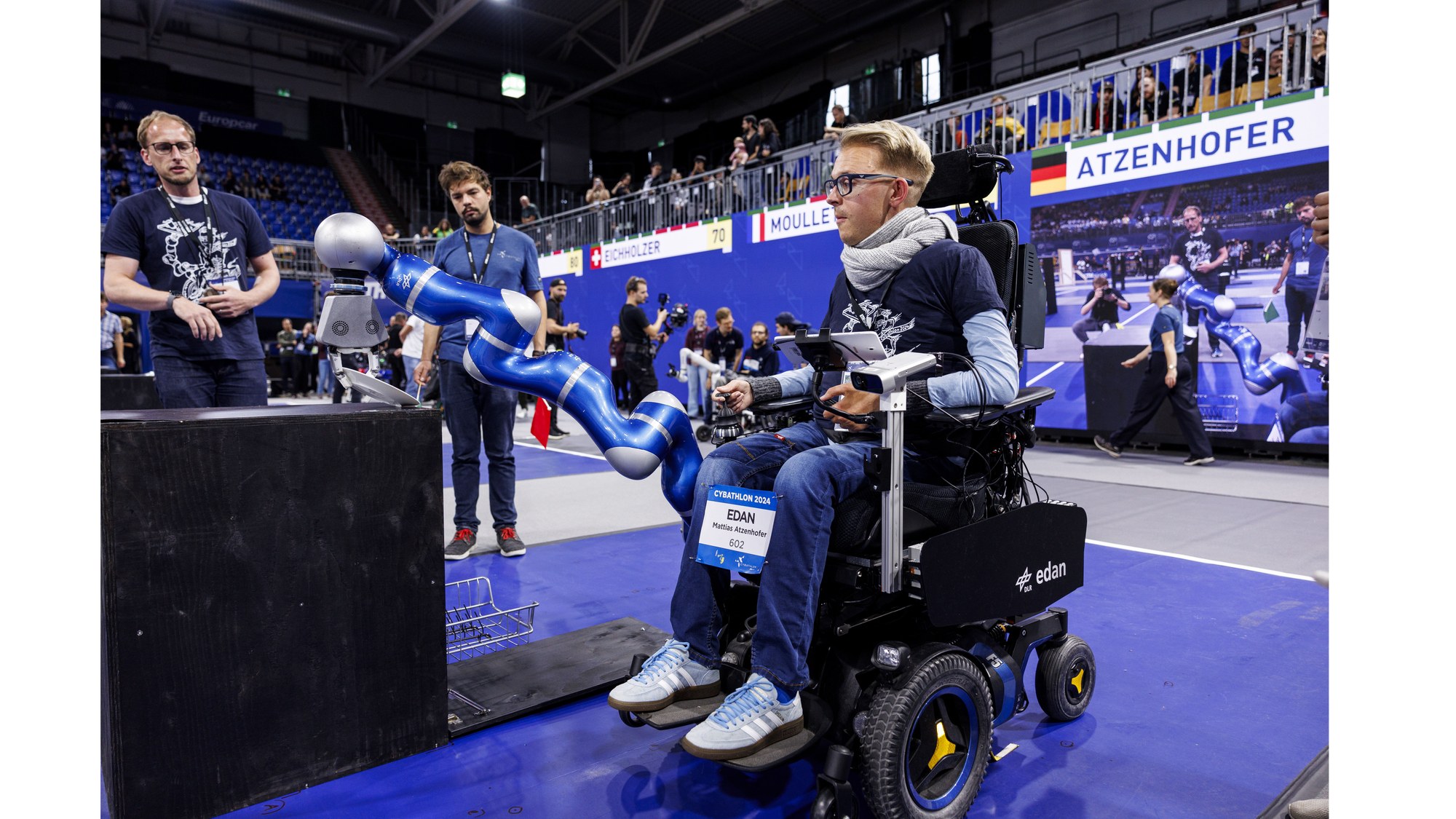 Das Team EDAN des Deutschen Zentrums für Luft- und Raumfahrt (DLR) auf dem Weg zum Sieg im ROB - Assistance Robot Race während des Cybathlon 2024 in Kloten, Schweiz, Samstag, 26. Oktober 2024.
