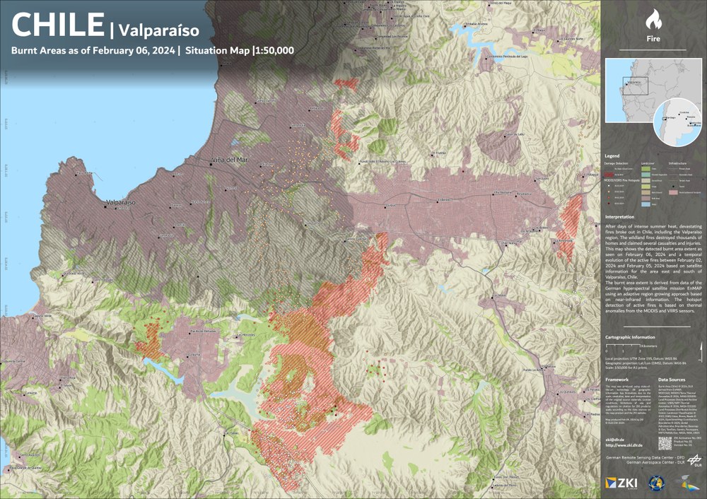 Das DLR stellt Erdbeobachtungsdaten der deutschen Radarsatelliten TerraSAR-X und TanDEM-X sowie des deutschen Hyperspektralsatelliten EnMAP zur Verfügung. Die Radarsatelliten haben die besondere Fähigkeit, unabhängig von Wolkenbedeckung oder Tageslichtverhältnissen jederzeit detaillierte Bilder liefern zu können. Sie eignen sich besonders für die Kartierung nach Flutkatastrophen. EnMAP liefert besonders bei Walbränden, Vulkanausbrüchen oder Ölverschmutzungen wichtige Informationen.