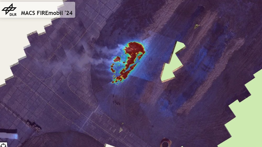 Vom 19. bis 21. September 2024 fand im brandenburgischen Welzow die Leistungsschau Krisenmanagement und Katastrophenschutz FIREmobil statt. Die Teilnehmenden aus Sicherheitsbehörden und Einsatzorganisationen tauschten sich in diesem Rahmen zu den ständig präsenten Herausforderungen von Wald-, Flächen- und Vegetationsbränden sowie Hochwasserereignissen aus. Wissenschaftlerinnen und Wissenschaftler vom DLR-Institut für Optische Sensorsysteme demonstrierten gemeinsam mit dem neuen Kooperationspartner @fire eine Echtzeit-Kartierung durch das Modular Aerial Camera System (MACS) am Beispiel eines Waldbrandszenarios.
