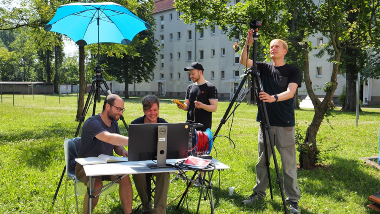 Bei einer Messkampagne erprobten Wissenschaftler die Praxistauglichkeit der neuen Messmethoden zur Ortung von Undichtigkeiten in Gebäudehüllen an verschiedenen Fassadenelementen eines zu sanierenden Mehrfamilienhauses.