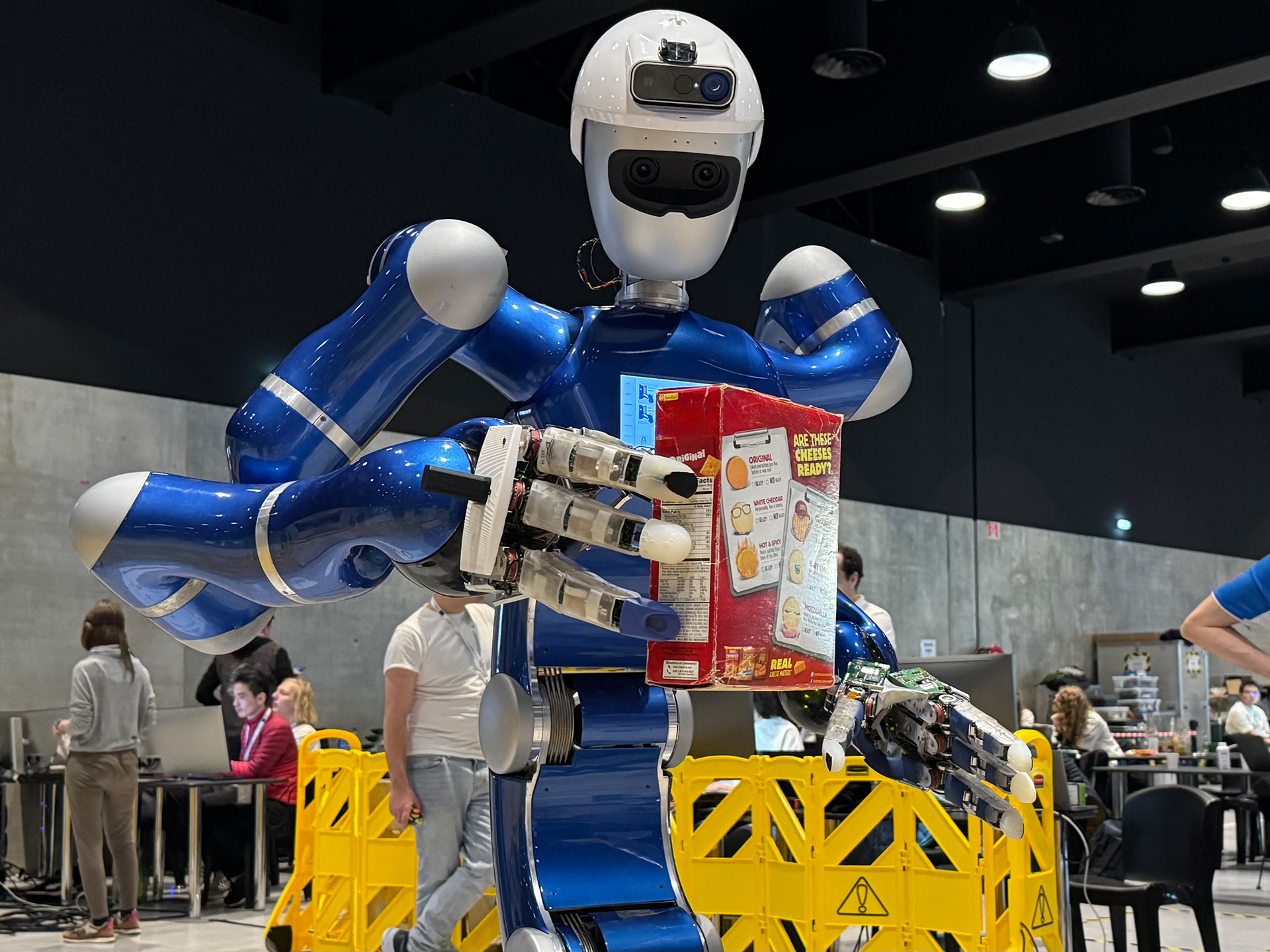 Unter 50 Gegenständen musste der DLR-Roboter Rollin‘ Justin auf Zuruf selbstständig den richtigen greifen – eine Herausforderung, die der Humanoide nur mit Hilfe von künstlicher Intelligenz bewältigt.