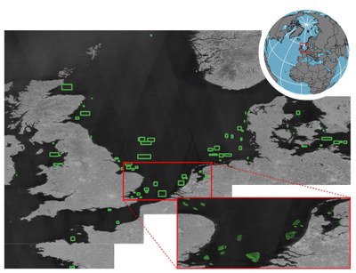 Um den globalen Ausbau der Offshore-Windenergie präzise zu verfolgen, hat das EOC ein satellitengestütztes Monitoring-Verfahren entwickelt. Dieses basiert auf Radardaten des Sentinel-1-Satelliten der Europäischen Weltraumorganisation ESA und künstlicher Intelligenz. Die Forschenden im DLR nutzen dazu das gesamte Sentinel-1-Bildarchiv. Sie identifizieren weltweit einzelne Offshore-Windturbinen und bestimmen ihren Entwicklungsstand quartalsweise. Das satellitengestützte Monitoring bietet auch eine Datengrundlage für die Begleitforschung zu Umweltauswirkungen, Effizienzsteigerung und nachhaltiger Planung.
